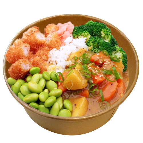 Gefrituurde rund, komkommer, kimchi mayonaise, teriyaki saus, sesame en lente ui